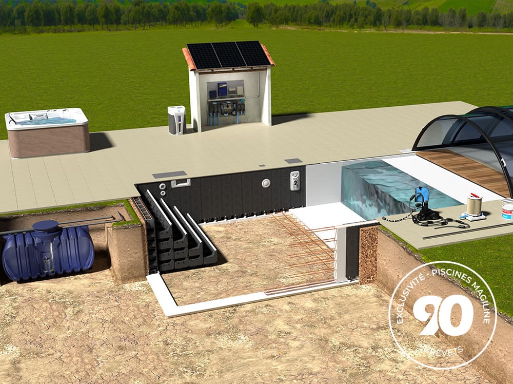 Since 1994, Piscines Magiline has stood out for its bold choices: self-supporting concrete structure, cartridge filtration, integrated home automation, submerged shutters, etc.